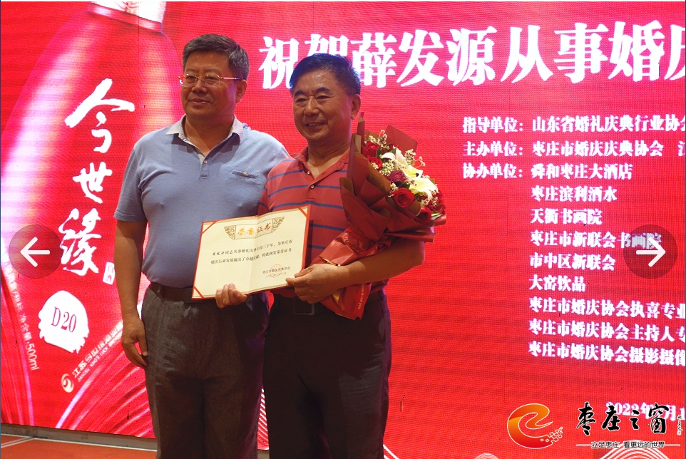 在專(zhuān)委會(huì)成立一周年之際,為了更好地開(kāi)展工作,棗莊市婚慶慶典協(xié)會(huì)特舉辦專(zhuān)委會(huì)成立1周年慶典暨婚慶產(chǎn)業(yè)鏈融合發(fā)展座談會(huì)。原棗莊市兩新組織黨工委副書(shū)記、市民政局一級(jí)調(diào)研員叢方佐在座談會(huì)上致賀詞,山東省婚禮慶典行業(yè)協(xié)會(huì)、棗莊市婚慶慶典協(xié)會(huì)、江蘇今世緣酒業(yè)銷(xiāo)售有限公司、舜和棗莊大酒店、棗莊濱利酒水、天衢書(shū)畫(huà)院、棗莊市新聯(lián)會(huì)書(shū)畫(huà)院、市中區(qū)新聯(lián)會(huì)、大窯飲品、棗莊市婚慶協(xié)會(huì)執(zhí)喜專(zhuān)業(yè)委員會(huì)、棗莊市婚慶協(xié)會(huì)主持人專(zhuān)業(yè)委員會(huì)、棗莊市婚慶協(xié)會(huì)攝影攝像專(zhuān)業(yè)委員會(huì)等代表在座談會(huì)發(fā)言,對(duì)棗莊婚慶行業(yè)與相關(guān)婚慶產(chǎn)業(yè)的融合發(fā)展提出建議和期望。周年慶還給從事婚慶行業(yè)三十周年的薛發(fā)源同志頒發(fā)卓越成就獎(jiǎng),同時(shí),專(zhuān)委會(huì)專(zhuān)家顧問(wèn)團(tuán)新聘任7位同志為執(zhí)喜專(zhuān)業(yè)委員會(huì)顧問(wèn),進(jìn)一步提高了專(zhuān)委會(huì)的專(zhuān)業(yè)水平,在今后為廣大群眾提供更好的專(zhuān)業(yè)化服務(wù)。(楊仁成 攝影)