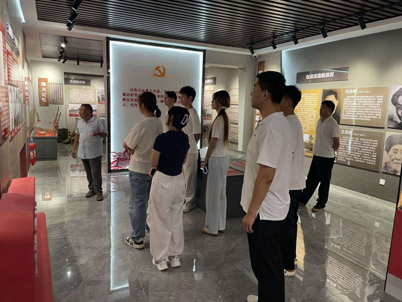 隨后,鎮(zhèn)文化書院“烽火紅印”志愿者丁繼海同志帶領(lǐng)新入學大學生們前往黃丘山套紅色記憶館開展紅色教育。通過參觀珍貴史料、聆聽革命故事,學子們深刻感悟革命先輩的奮斗精神,進一步堅定了傳承紅色基因、勇?lián)鷷r代使命的理想信念。